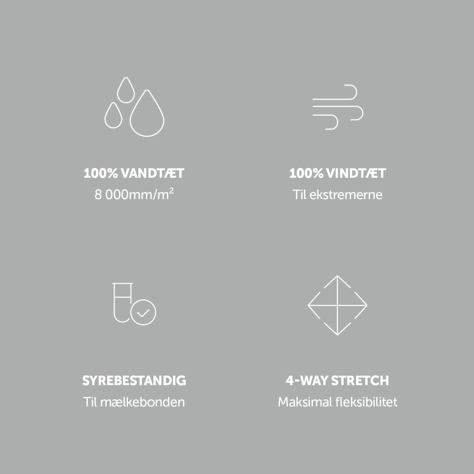 - Ekstremt vandtæt: >8,000mm/m2/24h