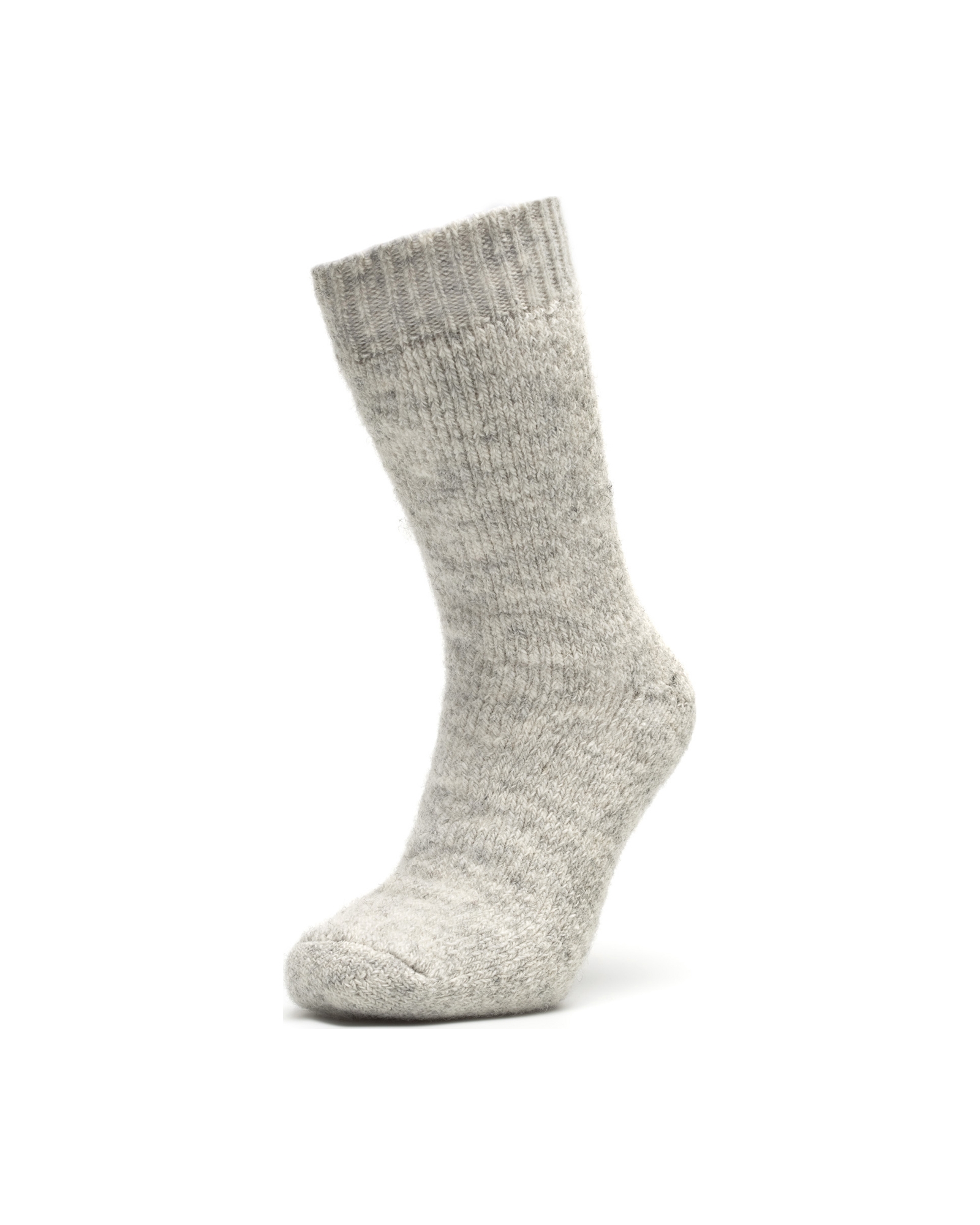 Kraftig uldsok med ribstrik i skaftet. Sålen er frottestrikket, som beskytter foden og giver en stødabsoberende effekt.