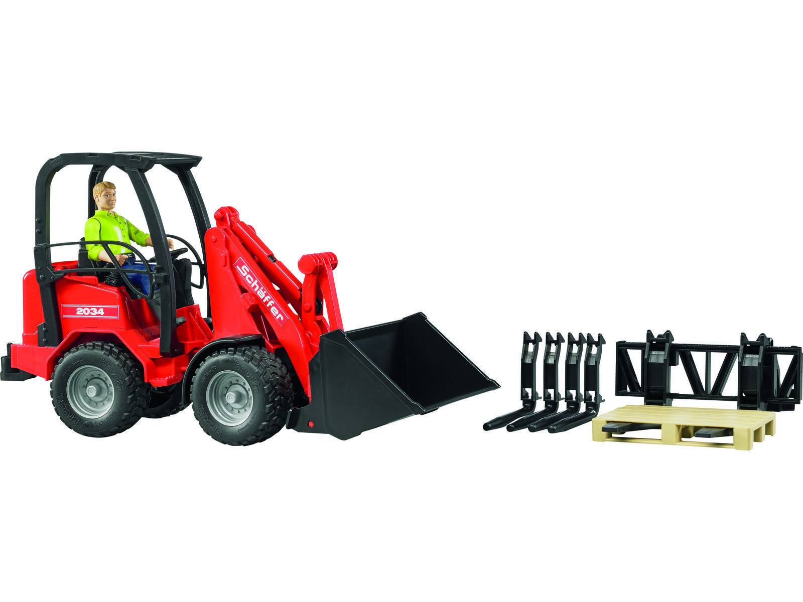Bruder minilæsser Schäffer 2034 inkl. figur og tilbehør. 1:16