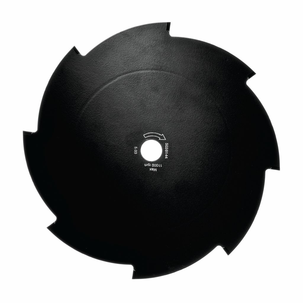 8-tands græsklinge er velegnet til tæt græs, men ikke til træagtige vækster. Græsset falder på klingen og laver pæne rækker. Ø250mm 1" hul