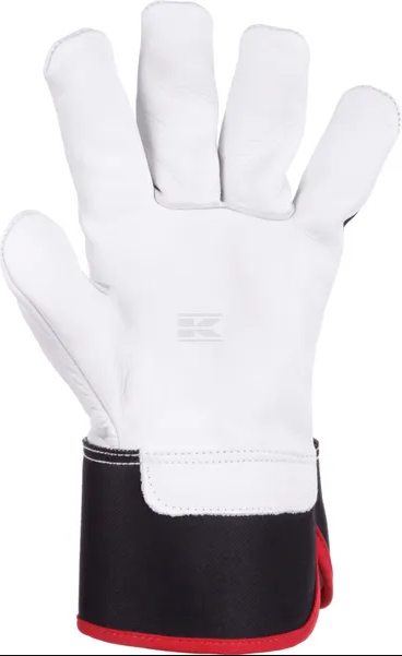Handsken har håndflader, pulsåre- og knobeskyttelse i koskind.