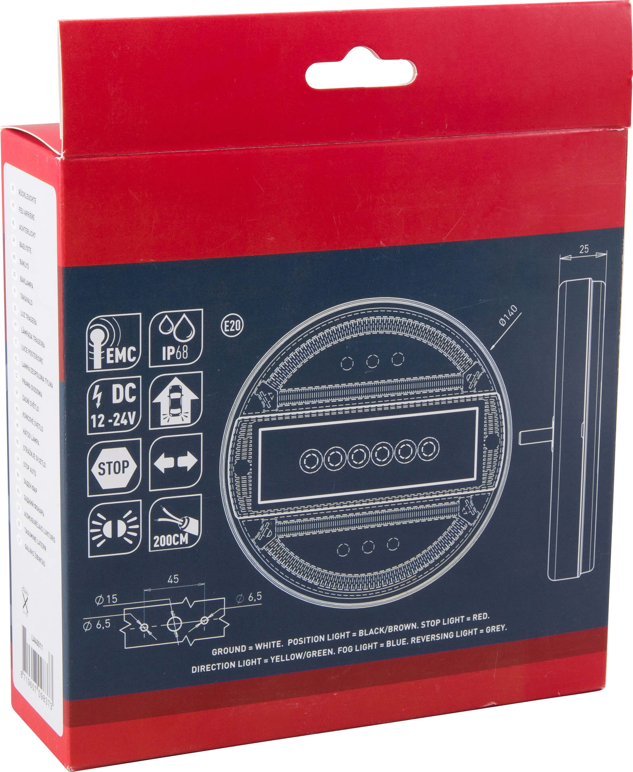 Funktioner: Positionslys, bremselys og blinklys