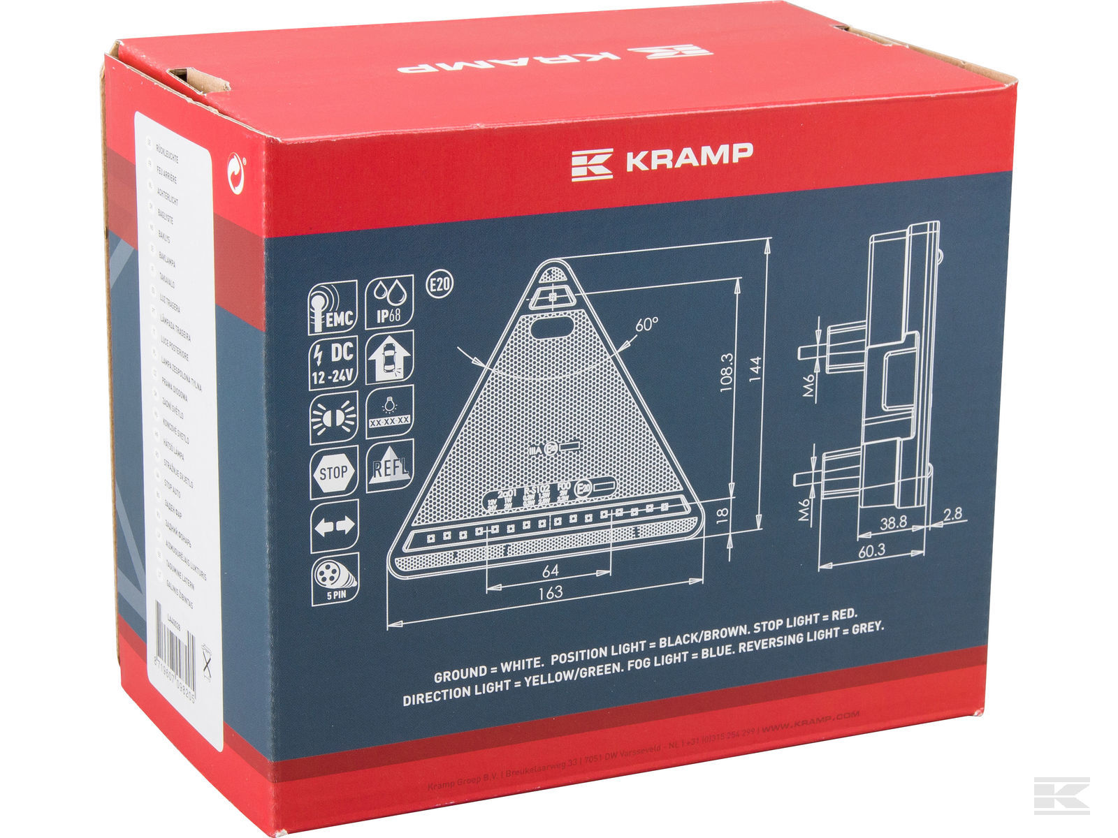 Kramp LED Baglygte trekant ventre m/deutsch stik