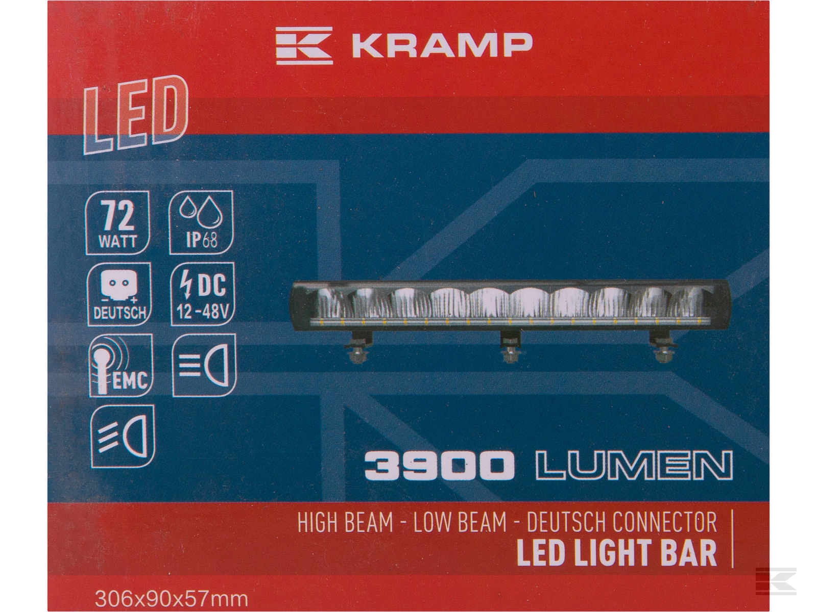 Kramp LED Lysbar 3900 Lumen 72 W høj/lav E-mærke