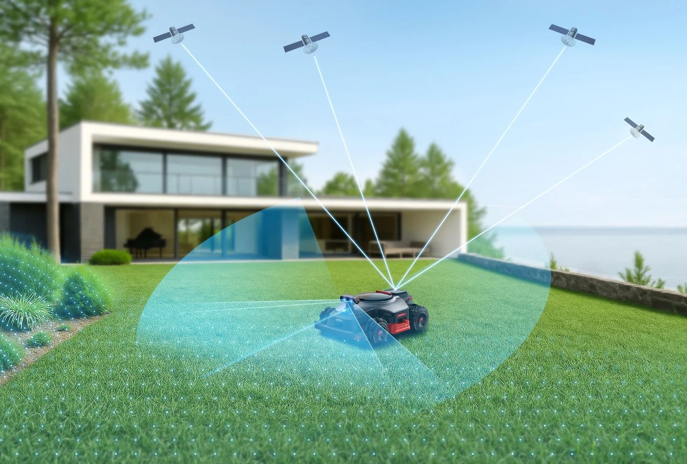NextNav som kombinere teknologierne NRTK, AI stereo syn med 360° 3D LiDAR, Robotplæneklipperen laver selv et 3D kort over haven og bruger satellitter for altid at have optimal signal, uden brug af afgrænsningskabel eller referencestation.