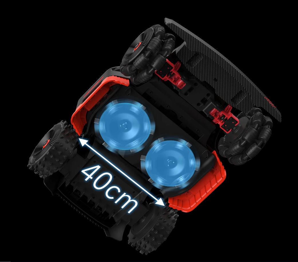 Terrængående hjul og kraftfulde hjulmotorer som kan klare skråninger op til 80% (38,6°) stigning.