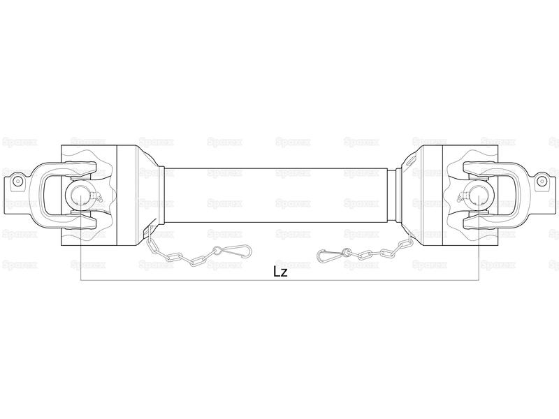 Kraftoverførringaksel: PTO Aksel - (Lz) Længde: 1010mm, 1 3/8'' x 6 Spline Q.R. til 1 3/8'' x 6 Spline Q.R.