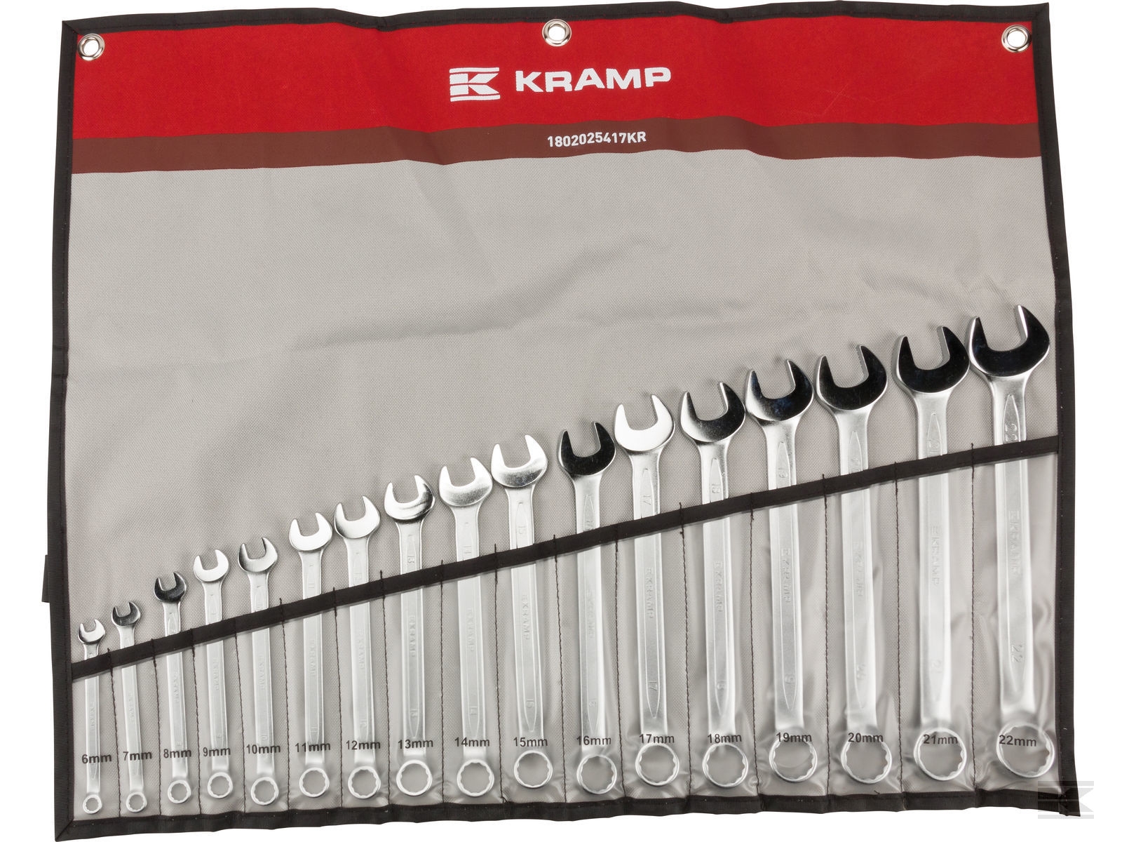 Ringgaffelnøglesæt med 17 nøgler fra Kramp.
