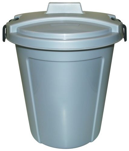 Fodertønden har låsehåndtag i låget.Farve grå.