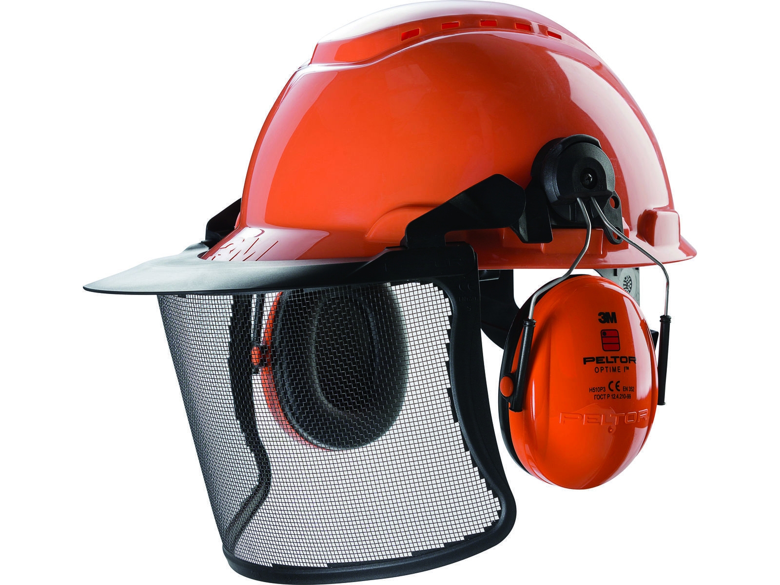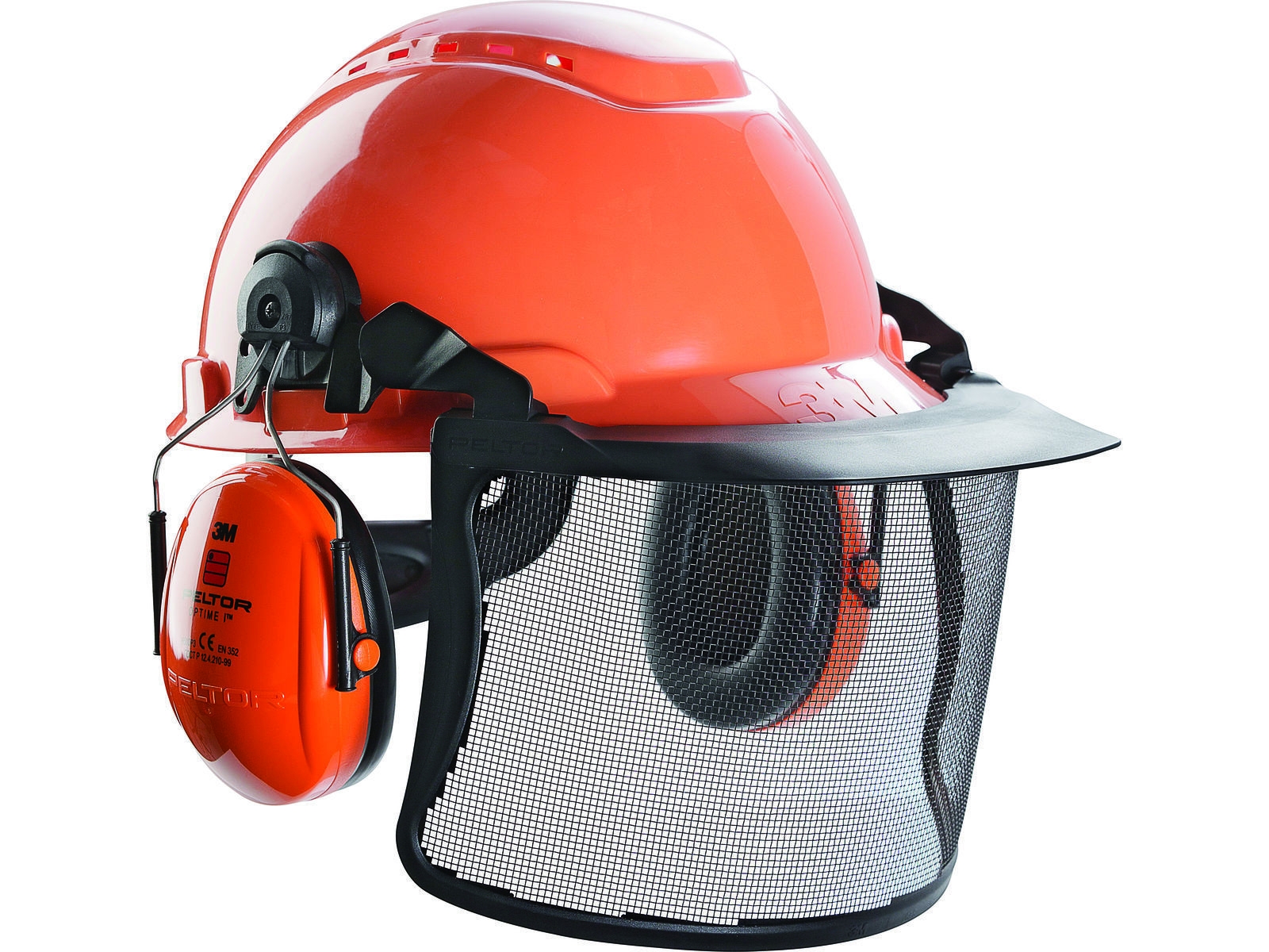 Skovhjelm med visir og høreværn fra 3M.