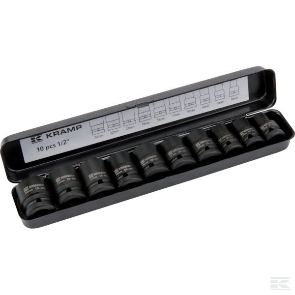 Kramp 1/2" slagtoppesæt med 10 dele i chrome molybdenum.