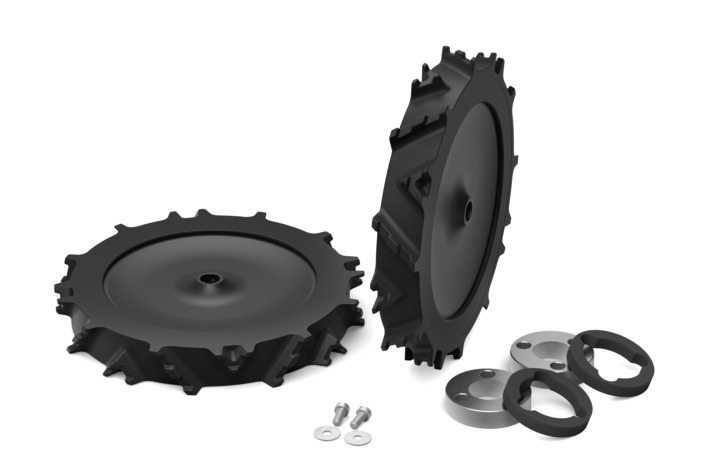 De særlige terrængående hjul fra Stihl giver et godt greb på uhævne flader.