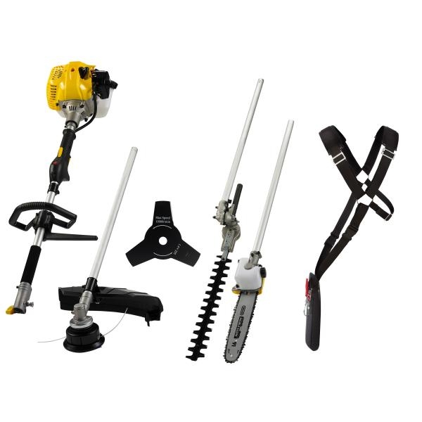 Texas BCU33M er en 4 i 1 multimaskine med klinge, snørehoved, kædesav og hækkeklipper.Det delbare skaft gør det nemt at skifte mellem tilbehøret.Tekniske data om vores Texas BCU33M 4i1 multimaskineSnørehoved: 2,4 mm snøre/Ø 43 cm3-tands klinge: Ø 25 cm Kædesav: 25 cm sværdHækkeklipper: 41 cm skær og 24 mm KlippebreddeTotallængde af maskine og hækkeklipper/kædesav er 1,74 m33 ccm 2-takt motorVægt 6,9 kg.Der medfølger en bæresele til modellen.Det smarte ved denne 4 i 1 multimaskine fra Texas er, som navnet antyder, at den alt efter udformning og skiftbare dele, kan have mange forskellige funktioner i haven. Har du spørgsmål vedr. hvilken multimaskine, der kan dække dine behov, er det en god idé at tage en snak med os, så vi finder den rette multimaskine til dig.