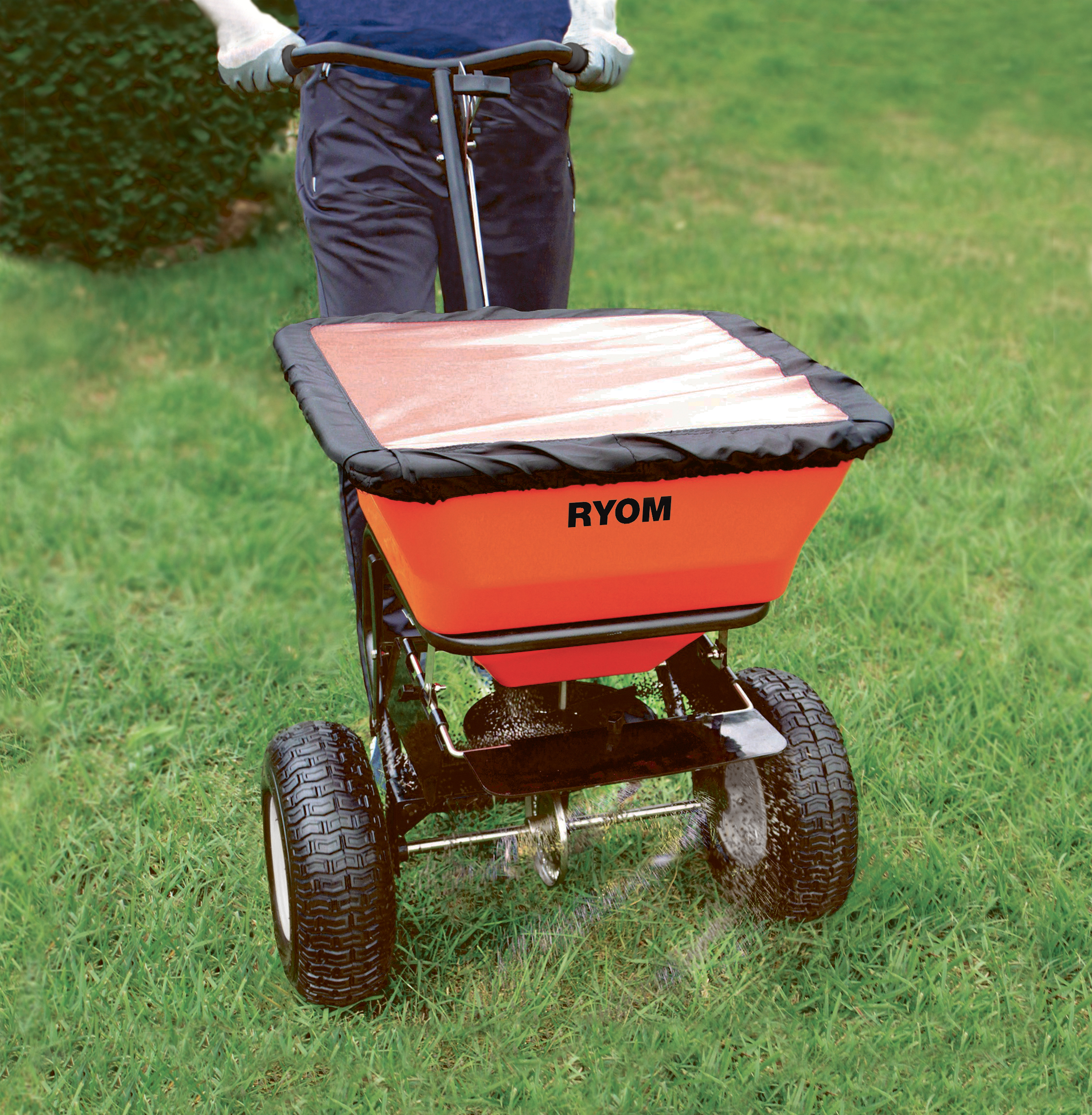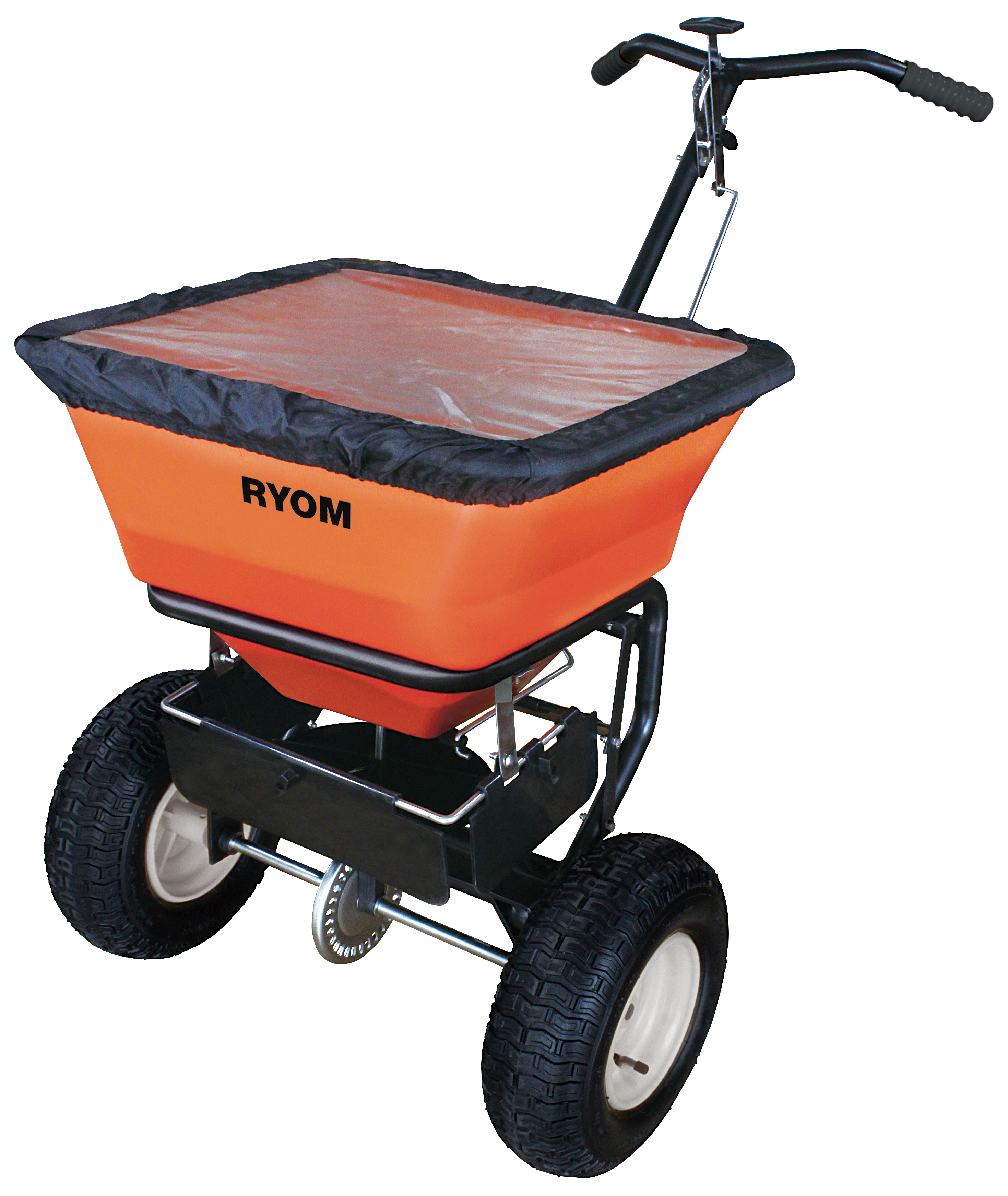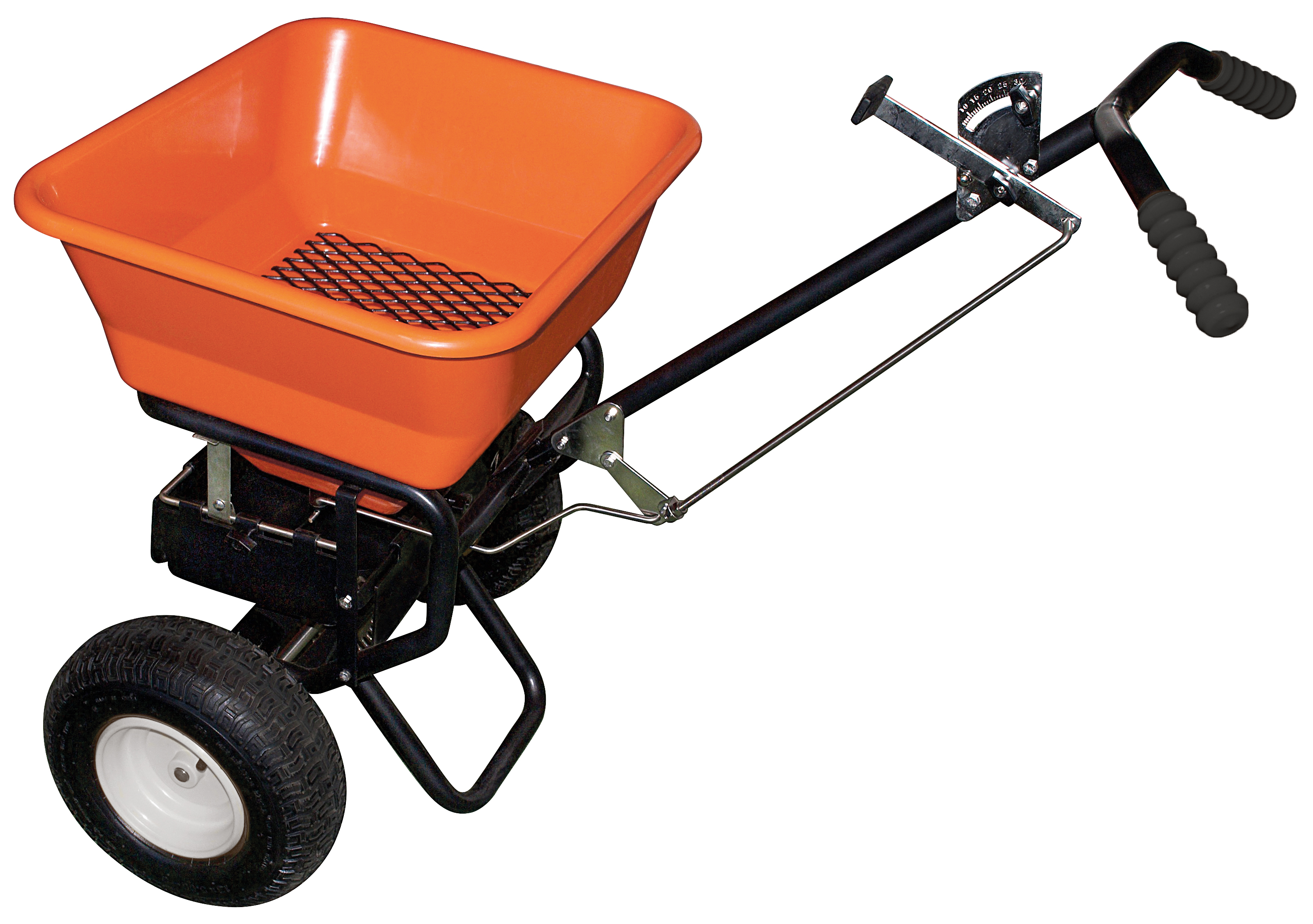 Sprederen er udstyret med robuste luftgummihjul og har en stor 45 liter plastbeholder i brudsikkert plast.