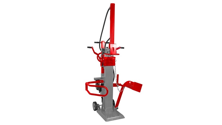 Elektrohydraulisk vertikal brændekløver som yder et maks. tryk på 11 ton.